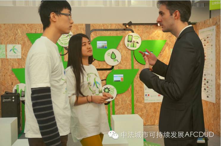 11:30,展会迎来了一位现代艺术家Yannick Monget,他所属的YMBIOM公司主要负责世界各地的策展活动。他目前的创作是通过PS技术展示丑化的环境和幻想中美好的未来,用悬殊的对比唤起大众环保意识 ,目前正在市政厅靠近Rue de Rivoli一侧展出。他希望能与中国的合作伙伴办环保展,来唤起世界对中国环境问题的关注。